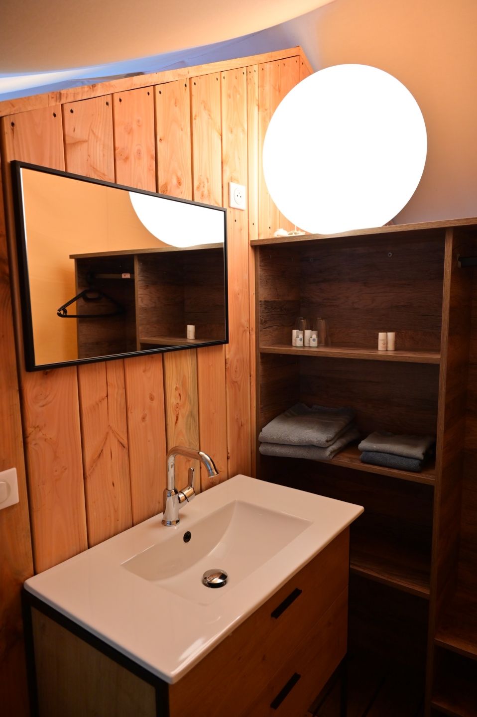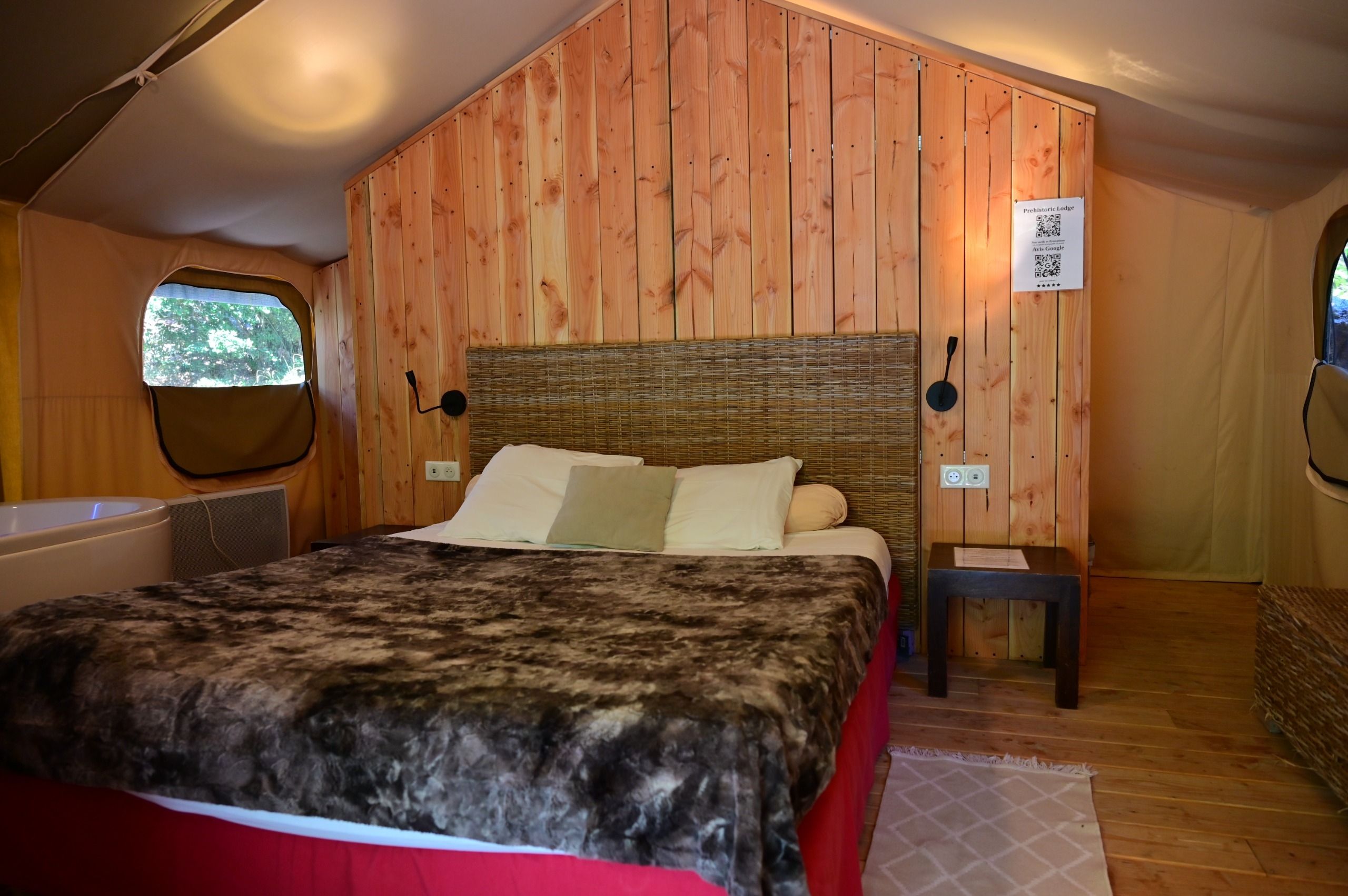 Each lodge can accommodate two guests with a 160 cm double bed, making them perfect for a romantic stay in the Ardèche.